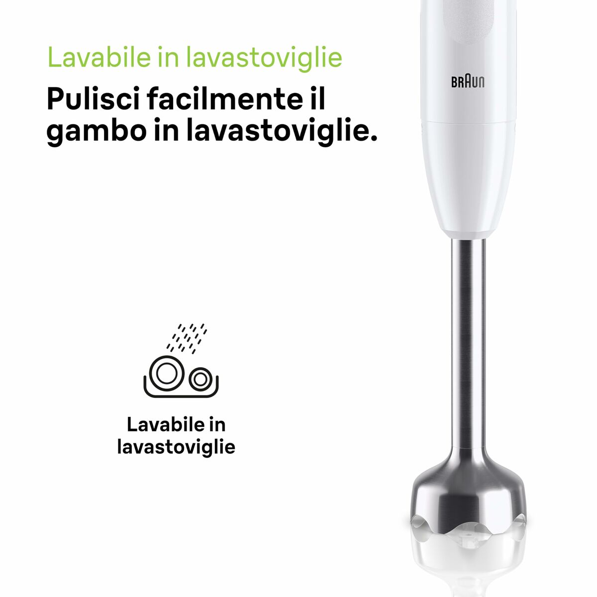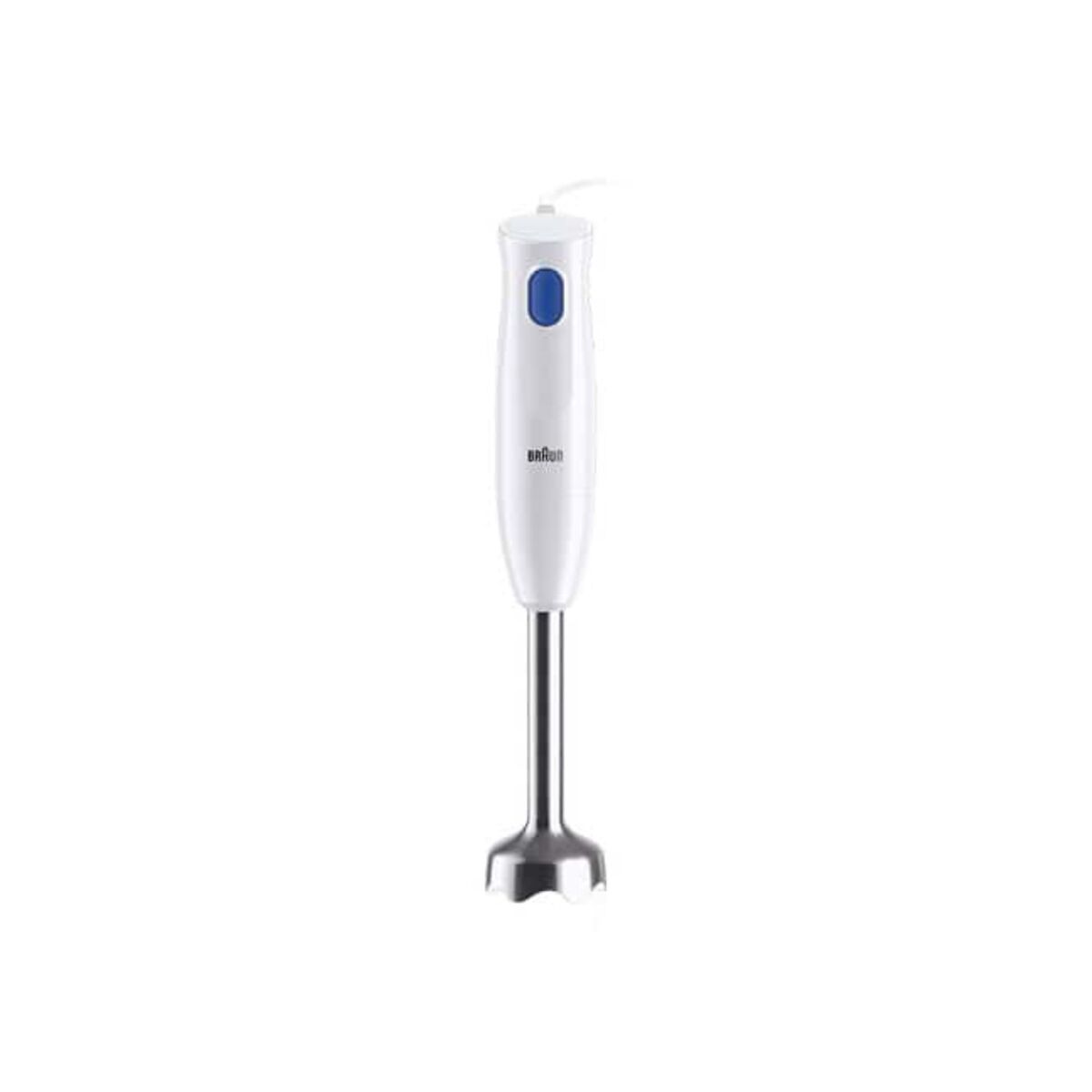 The Braun blender is an appliance designed to prepare mixes and smoothies efficiently and comfortably. It features an elegant white design that fits easily into any kitchen. Its jug has a 600 ml capacity, ideal for making single servings or small portions without wasting ingredients. It has a 450 W power output that provides enough force to crush and blend various ingredients, from fruits and vegetables to soft ice, ensuring smooth results every time. Its structure includes stainless steel components, which guarantee greater durability and resistance to regular wear, as well as easier cleaning after use. It is powered by a 1.2-meter electric cable, long enough for convenient connection near the work area without restrictions. This blender is a practical and functional tool for those seeking a reliable product with basic features that meet daily kitchen mixing tasks, combining quality and efficiency in a compact, easy-to-handle format.