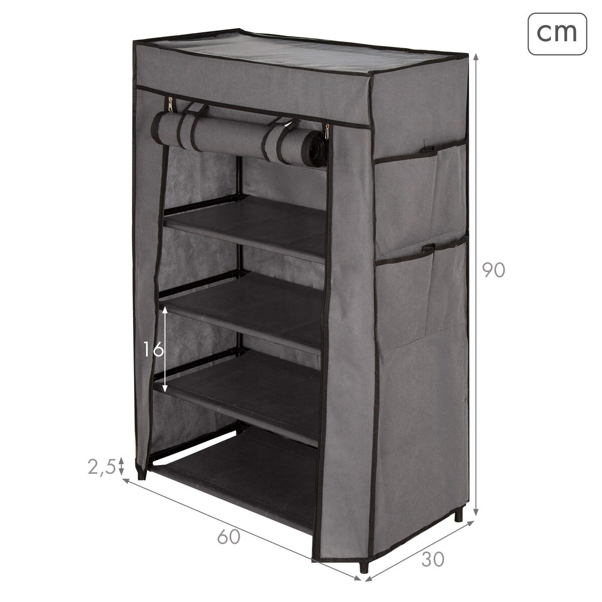 Shoe Rack Max Home Black Grey Metal Textile 60 X 90 X 30 CM (6 Units)