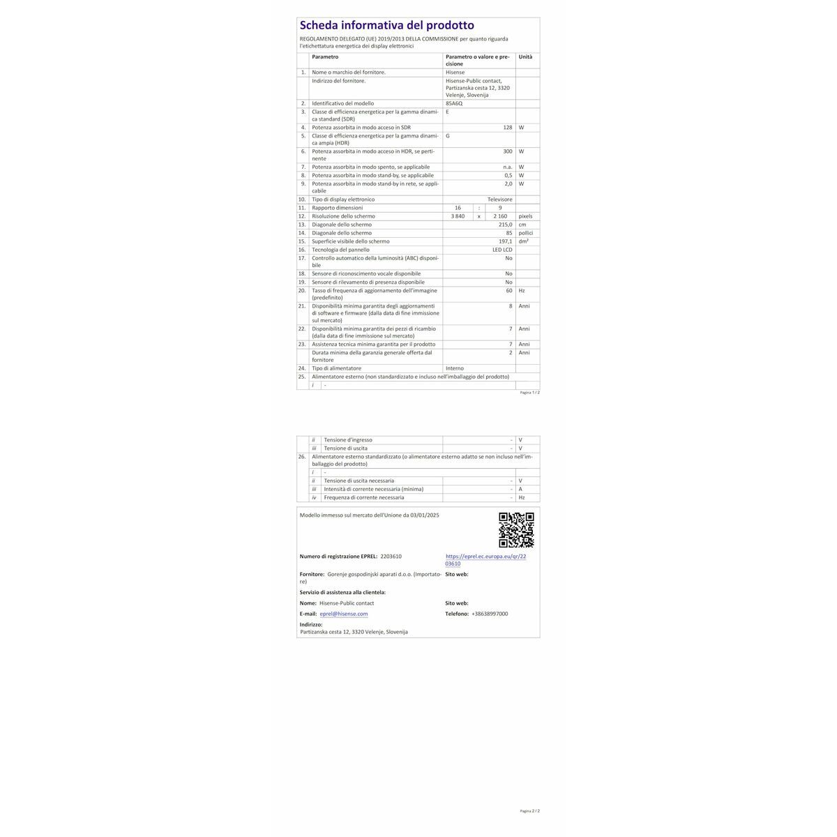 The Hisense 85-inch Smart TV combines a large-format visual proposal with advanced technologies aimed at delivering a complete, high-quality multimedia experience. Its 85″ flat screen with 4K Ultra HD resolution (3840 x 2160 pixels) guarantees sharp, detailed images, ideal for enjoying both TV content and streaming platforms with maximum definition and realism. This model features the VIDAA U8.5 operating system, which enables smooth and intuitive navigation through apps and smart services, enhancing access to a wide variety of digital content. Its built-in WiFi connectivity ensures a stable and fast connection for streaming and online apps. Regarding audio, it offers an estimated power of 30 W RMS, sufficient for clear, immersive sound that complements the screen’s visual quality. Its black color design adds sobriety and elegance, easily fitting into any home environment. Additionally, this TV includes a complete digital tuning system compatible with multiple formats: DVB-C, DVB-S, DVB-S2, DVB-T, and DVB-T2, facilitating reception of a wide range of terrestrial and satellite channels without extra devices. It features an energy rating of E, reflecting responsible consumption for its size and features. Overall, this large Hisense Smart TV is a versatile option for those seeking an immersive audiovisual experience with technical features suitable for advanced home use and full connectivity.